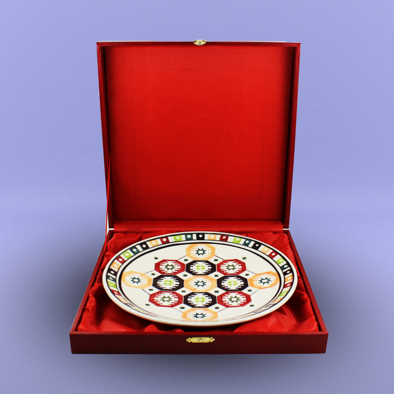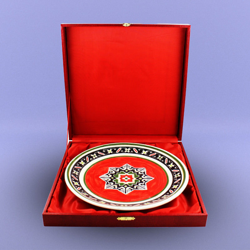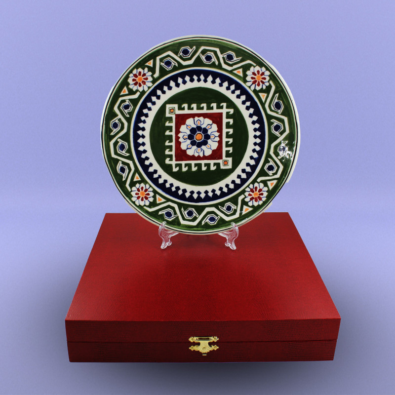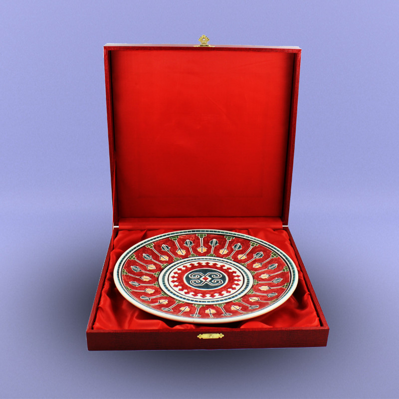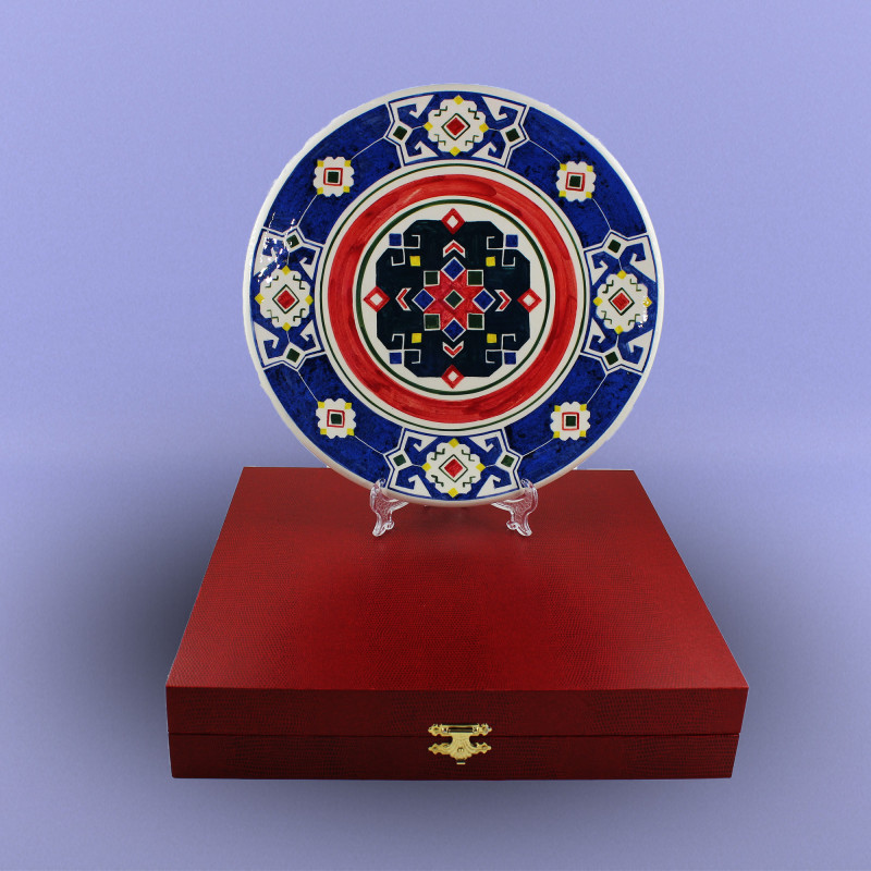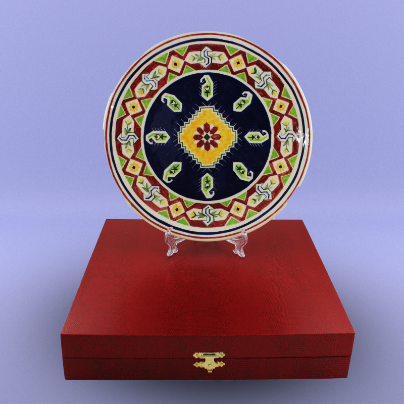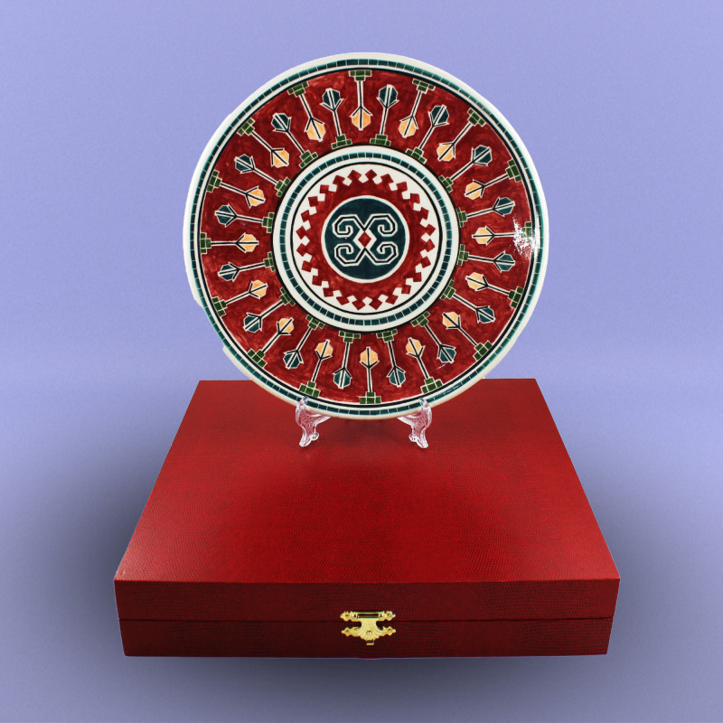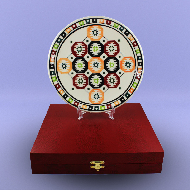 Milli Xalça Motivli boşqablar Diametri - 27 sm Biskivit bişirmə temperaturu: Seramik - 1040-10500C; Porselen - 950-10200C; Qırmızı gil məmulatları - 950-10000C. Seramik və Porselen biskivitlər Nargisporcelainin şirəaltı boyaları ilə boyanıb şirlənir və bişirilir: Seramik - 1040-10500C; Porselen - 1140-11500C.